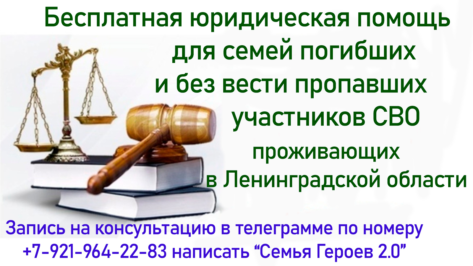 Бесплатная юридическая помощь для семей погибших и без вести пропавших участников СВО проживающих в Ленинградской области.